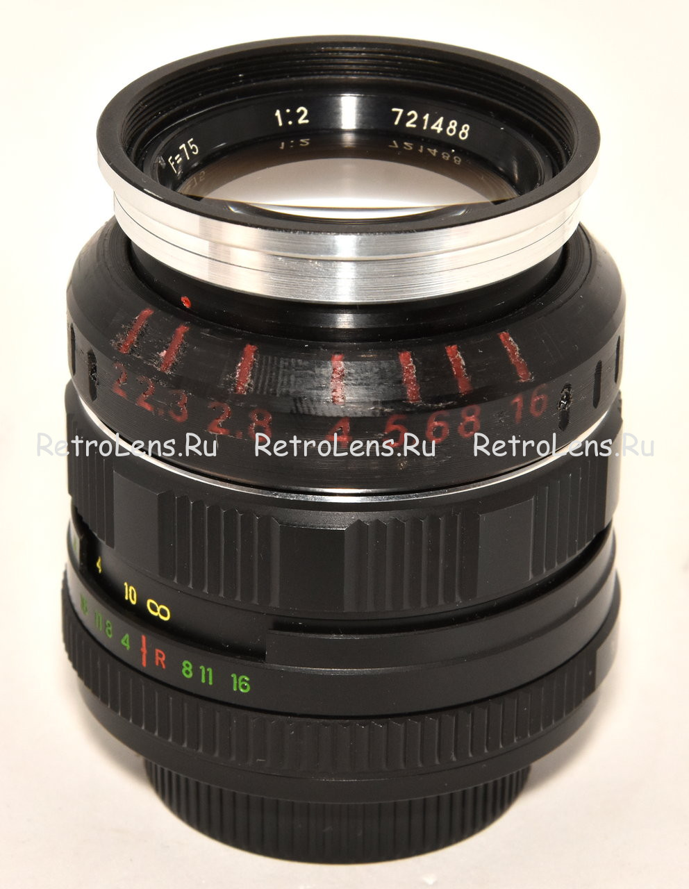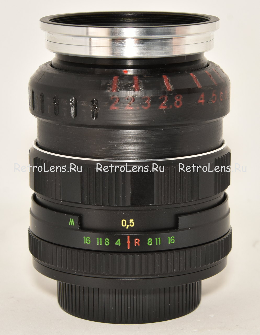 Провожу под заказ адаптацию данного объектива в фото-геликоид. В данном случае для адаптации был использован корпус объектива Гелиос-44 подходящей модификации. Работы провожу на токарном станке, так что точность размеров гарантируется. В данном случае родное кольцо управления диафрагмой доработано с использованием 3д-принтера. Пропечатаны цветные риски позиций диафрагмы. Также изготовлена передняя оправа объектива под стандартную резьбы, в данном случае 49мм (возможно и под другой диаметр).